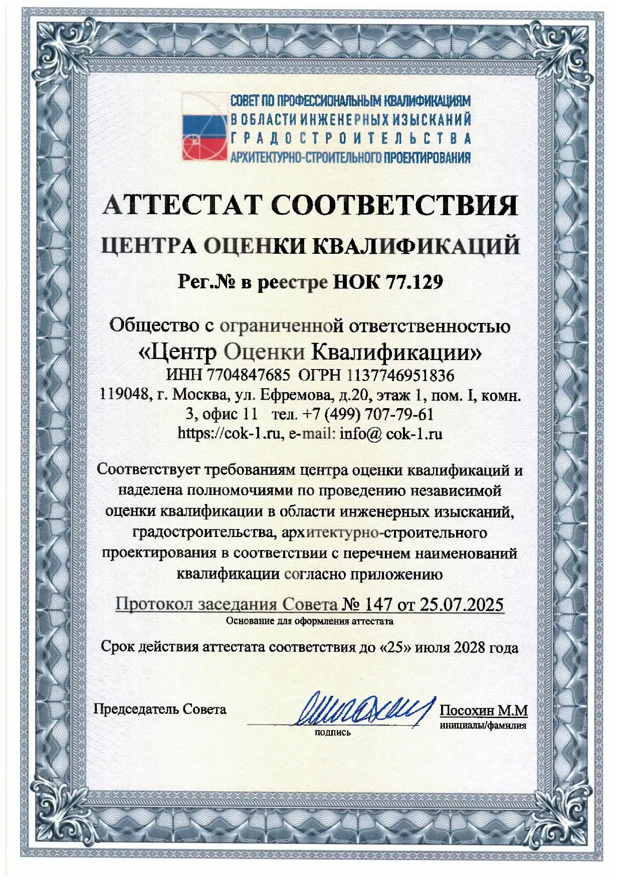 Аттестат соответствия НОПРИЗ РЕШЕНИЕ о наделении ООО «Центр Оценки Квалификации» полномочиями на проведение независимой оценки квалификации attestat-nopriz pdf 3.3 mb